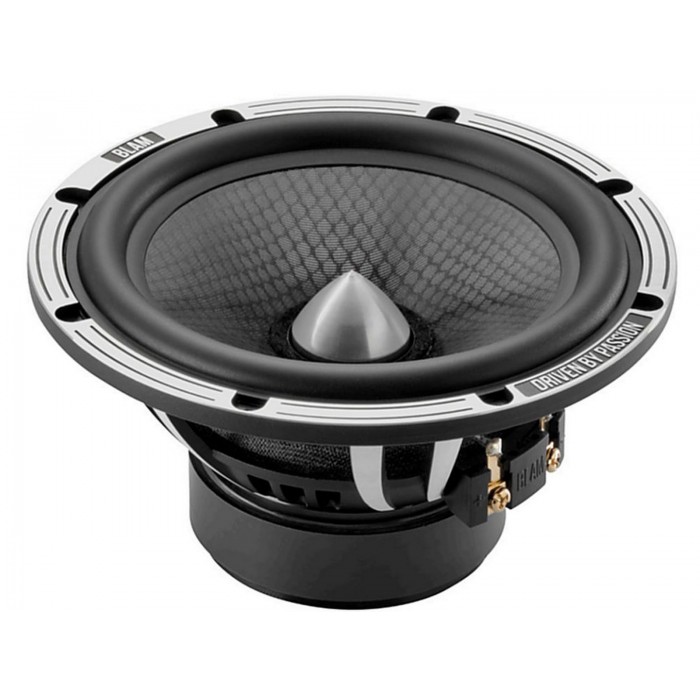 Kosz aluminiowy obrabiany maszynowo – Membrana z żywicy epoksydowej i włókna szklanego – Obudowa z butylu – Pająk „Conex” o długiej żywotności – Cewka drgająca 32 mm na karkasie z Kaptonu – Silnik magnetyczny 85 mm x 20 mm – Obwód magnetyczny o grubości 5 mm